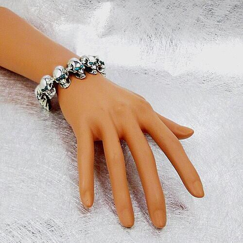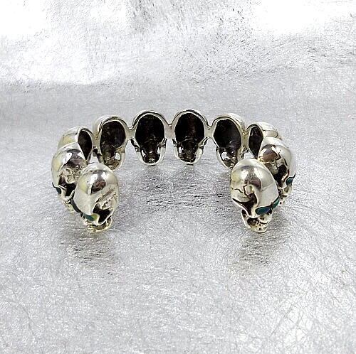 送料無料!スカルデザイン・ターコイズ(トルコ石)シルバーバングル3!大サイズ