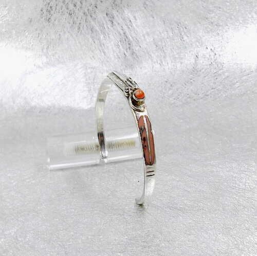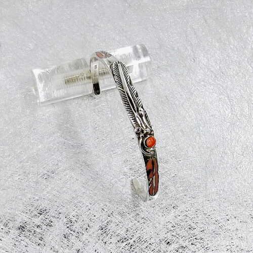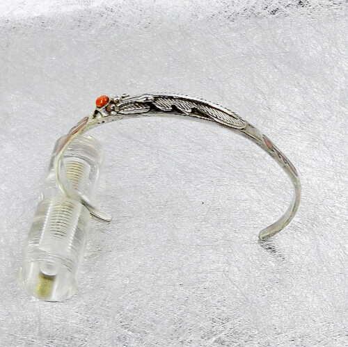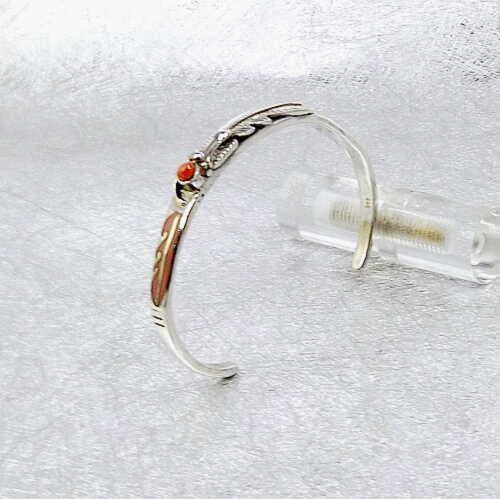 送料無料!ピンク珊瑚・フェザーシルバーバングル!3