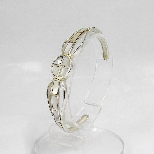シルバー925製のマザーオブパール(白蝶貝)4バングル1点物です。
