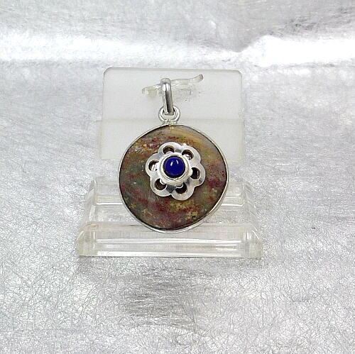 未使用のジャスパ石とラピスのアジアンチックなシルバー925製トップ!
