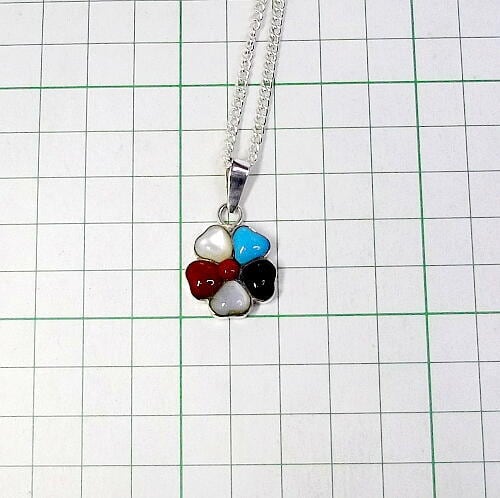 フラワーデザインのクラスターターコイズ・シルバー925製インディアントップ!1
